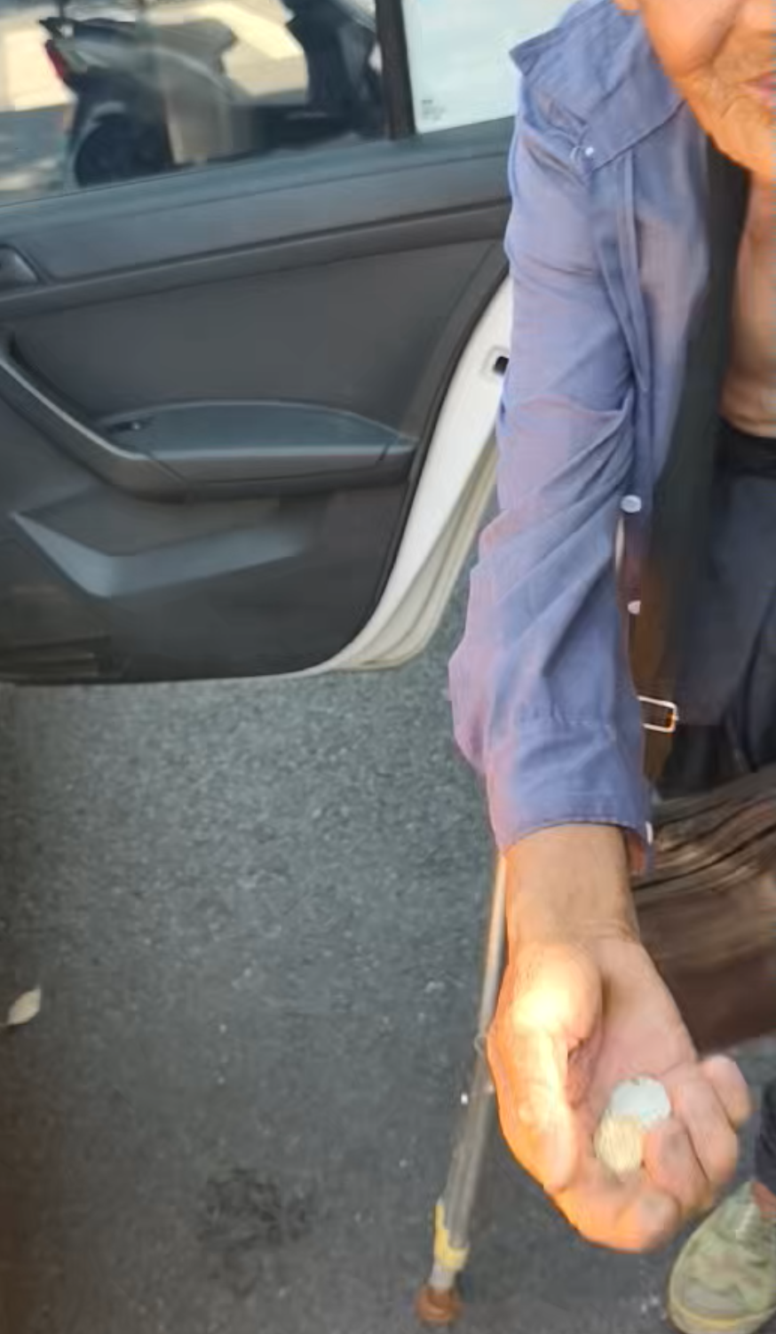 到达目的地后,巫萍下车打开后排右侧的车门,方便老人下车,她也用手机记录下了这一幕。视频中,车门一打开,老人就要付车费,但巫萍说,“不要不要,你都可怜死了,要你钱干嘛。”巫萍告诉记者,老人手中当时拿了几个硬币,有一元的,也有五角的。在她随后从后备箱将老人装有茶叶的箩筐拿下来给老人时,老人又要把车费给她,她又再次拒绝了。老人有些不好意思地说,“那怎么搞呢?”
