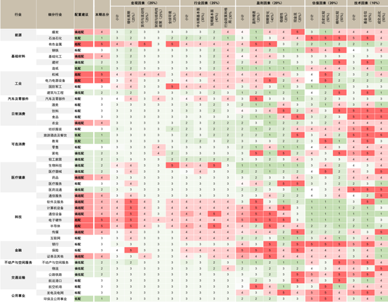图表47:中金A股行业配置观点及细分小项